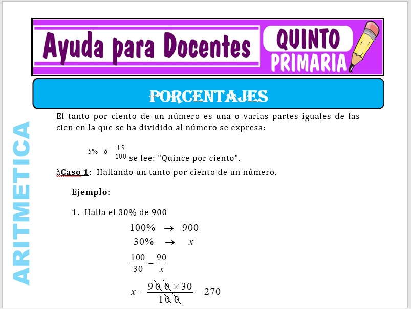 Aquí tendrás una ficha de Los Porcentajes para Quinto de Primaria o estudiantes que tengan 10 años de edad, esta ficha se ha desarrollado para el curso de Aritmética.