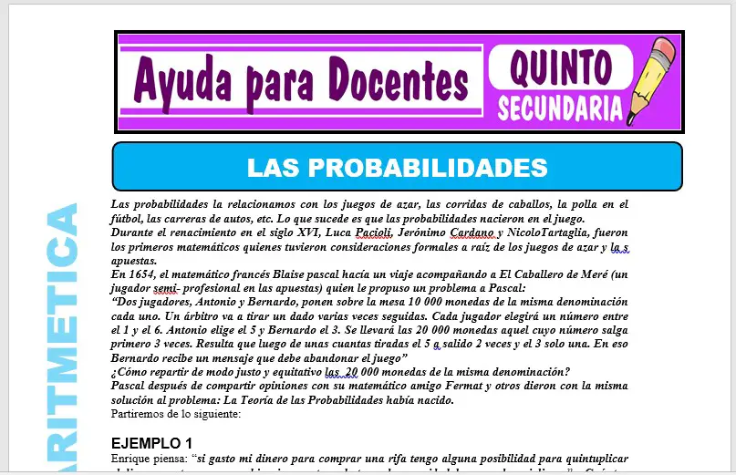 Con tan solo UN CLICK hallaras este gran material sobre Las Probabilidades, que te presentaremos a continuación: