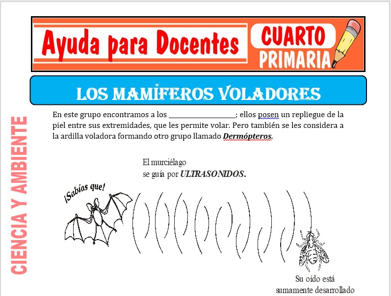 Aquí podrás obtener varias fichas de Mamíferos Voladores para Cuarto de Primaria o estudiantes que tengan 09 años de edad, esta ficha está preparada para el curso de Ciencia y Ambiente.