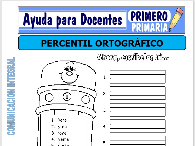 Aquí hallaras una ficha de Actividades de Percentil Ortográfico para Primero de Primaria o alumnos que tengan 06 años, esta ficha se creado especialmente para el curso de Comunicación Integral.
