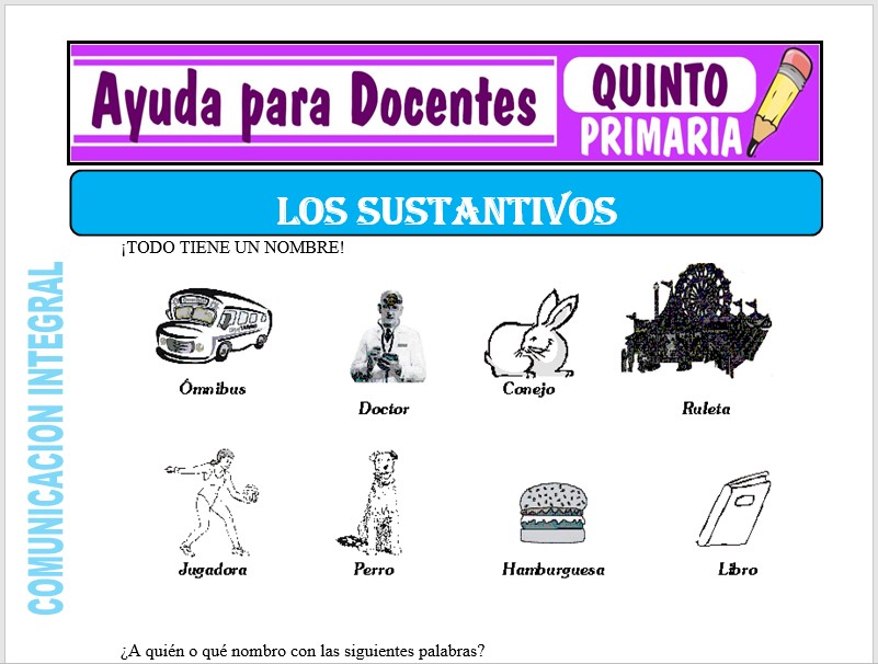 Aquí tendrás una ficha de Actividades de el Sustantivo para Quinto de Primaria o estudiantes que tengan 10 años de edad, esta ficha se ha desarrollado para el curso de Comunicación Integral.