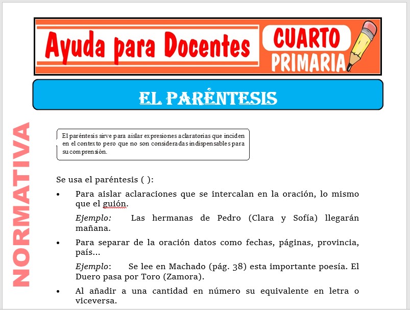 En este material didáctico de Normativa podrás visualizar algunos conceptos, ejercicios y actividades muy importantes sobre El Paréntesis, ahora veras parte de su contenido: