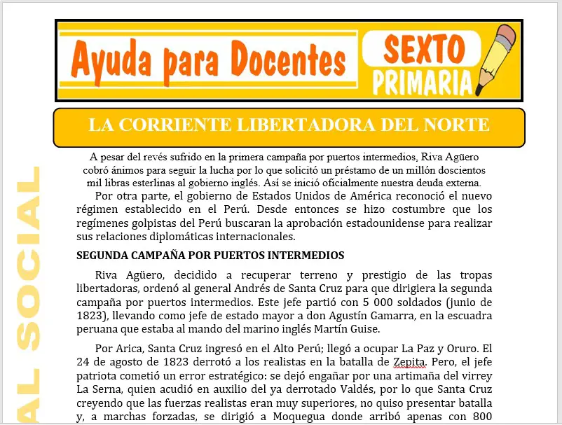 Aquí podrás adquirir fichas de Corriente Libertadora del Norte para Sexto de Primaria o estudiantes que tengan 11 años de edad, esta ficha se ha dedicado y trabajado para el curso de Personal Social.