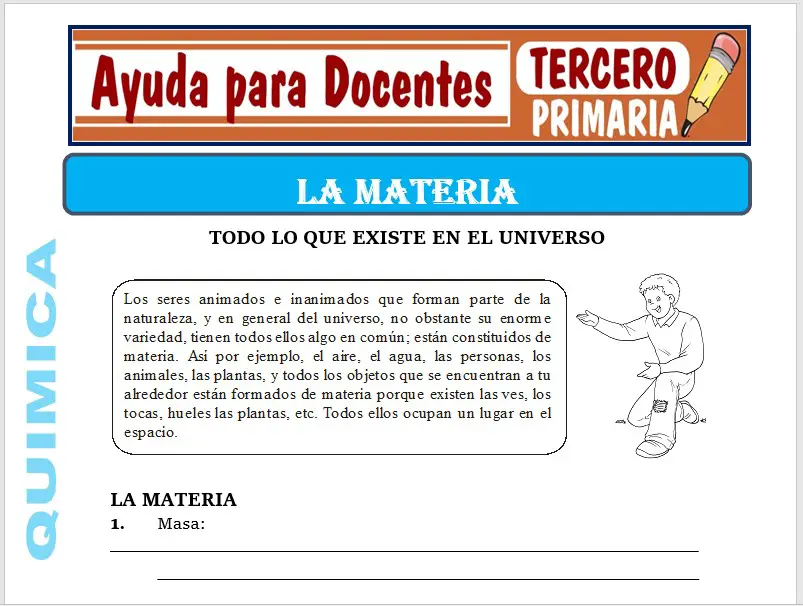 Aquí podrás encontrar fichas de La Materia para Tercero de Primaria o alumnos que tengan 08 años, esta ficha se ha trabajado para el curso de Química.