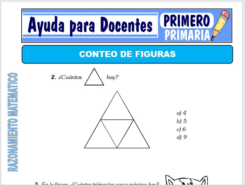 Aquí obtendrás una ficha de Formas de Conteo de Figuras para Primero de Primaria o alumnos que tengan 06 años, esta ficha se preparó para el curso de Razonamiento Matemático.