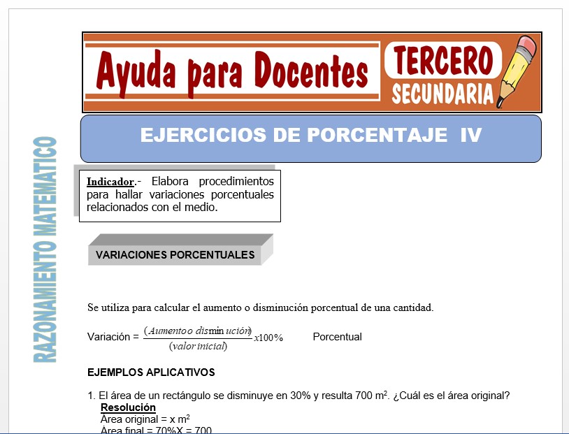 Con tan solo UN CLICK obtendrás este material sobre Ejercicios de Porcentajes IV, que te presentaremos a continuación:
