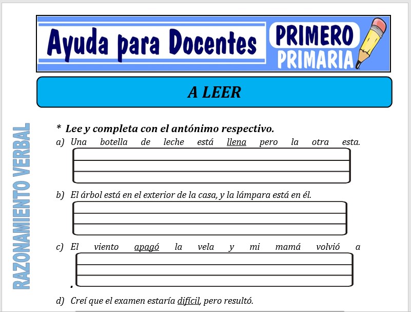 En este recurso didáctico de Razonamiento Verbal obtendrás algunos conceptos y actividades muy importantes sobre Fichas de a Leer, ahora veras parte de su contenido: