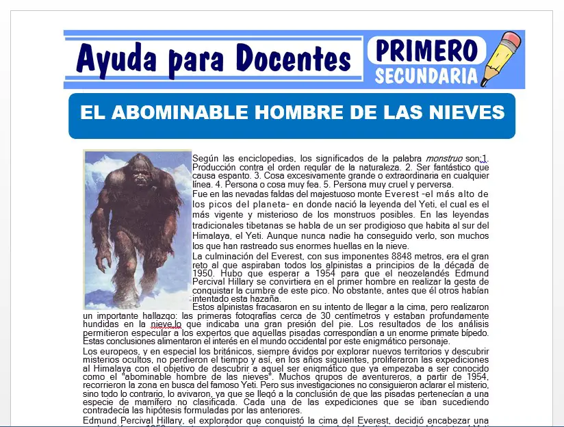 El Abominable Hombre de las Nieves para Primero de Secundaria