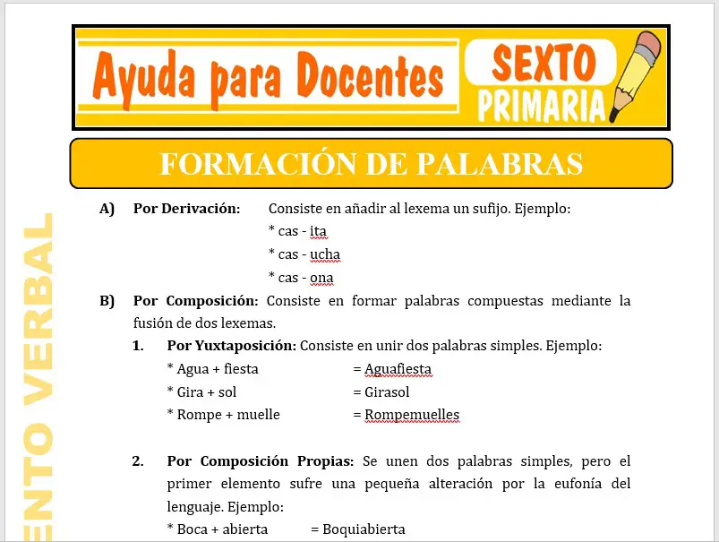 Formación de Palabras para Sexto de Primaria