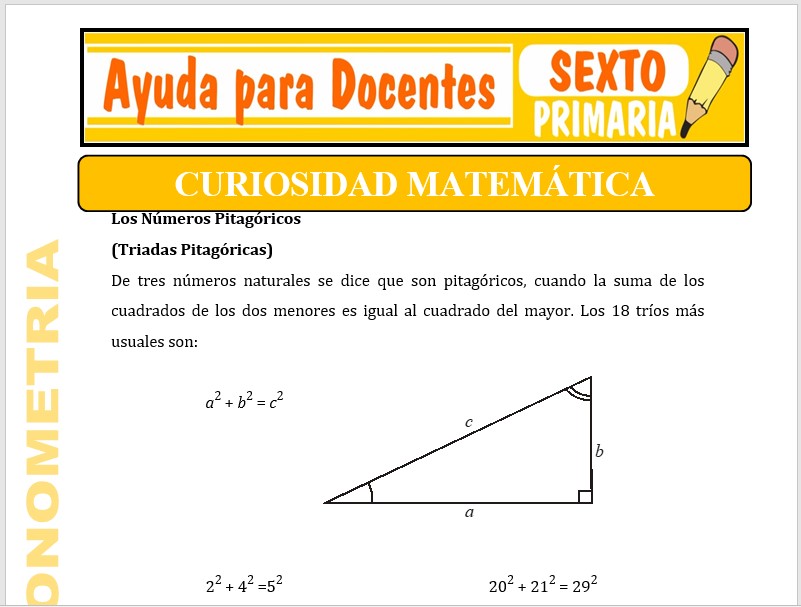 Aquí podrás adquirir fichas de Curiosidades Matemáticas para Sexto de Primaria o estudiantes que tengan 11 años de edad, esta ficha se ha dedicado y trabajado para el curso de Trigonometría.